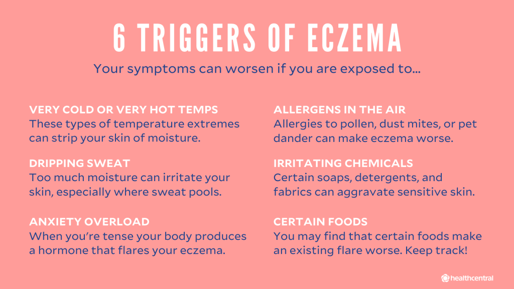 In the meantime – what is eczema? Basically, it’s a common skin condition causing patches of dry, itchy skin. This link will give you a great overview of they types, causes and treatments: